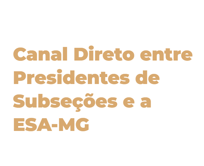 Sob a direção da Dra. Fernanda São José, a ESA-MG disponibiliza um canal exclusivo para os(as) presidentes de subseções da OAB-MG. Este espaço foi criado para fortalecer a parceria entre a ESA-MG e as subseções, facilitando o planejamento e a realização de iniciativas acadêmicas e institucionais.